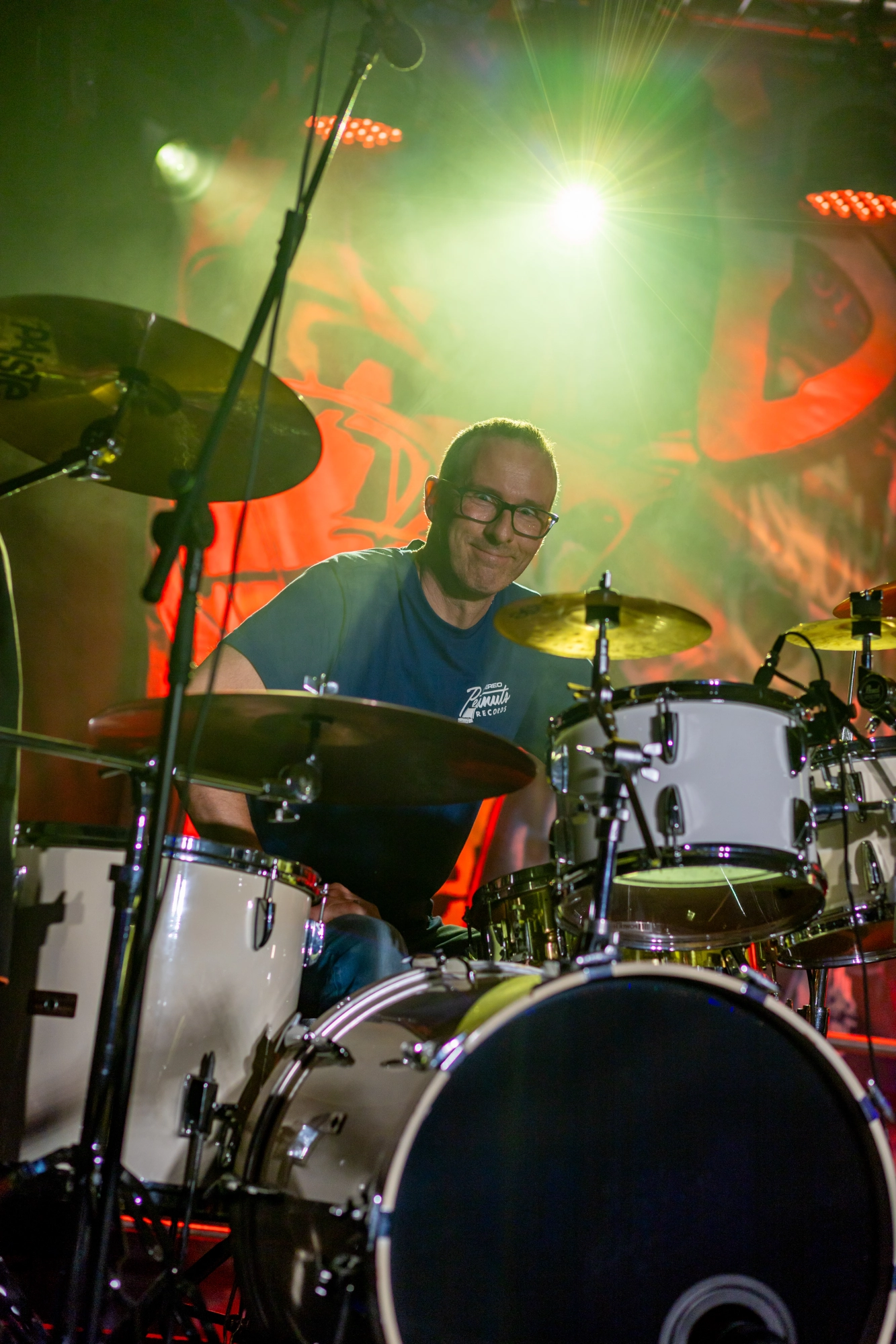 Der Motor der Band. Mit Erfahrung, einem Klick im Handgelenk und stürmischer Ruhe hält er alles zusammen. Er spielt laut, präzise und mit einer Gelassenheit, die nur echte Live‑Erfahrung bringt. Mit seinem trockenen Humor, seinem präzisen Timing und seiner unerschütterlichen Ruhe hält er alles zusammen, egal wie laut oder wild es wird.